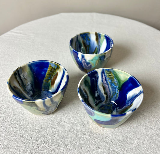Small Blue Mottled Bowls