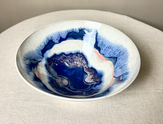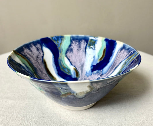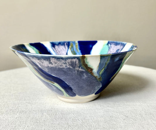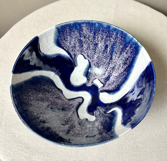Mottled Blue Large Serving Bowl